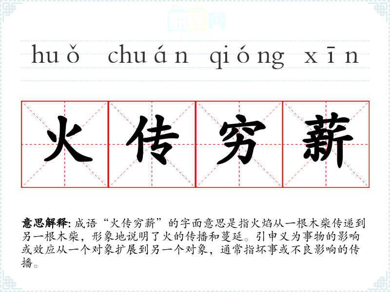 - 日常对话:例如在谈论某种负面**时,可以说:“这个谣言就像‘火传穷薪’一样,迅速传播开来。”