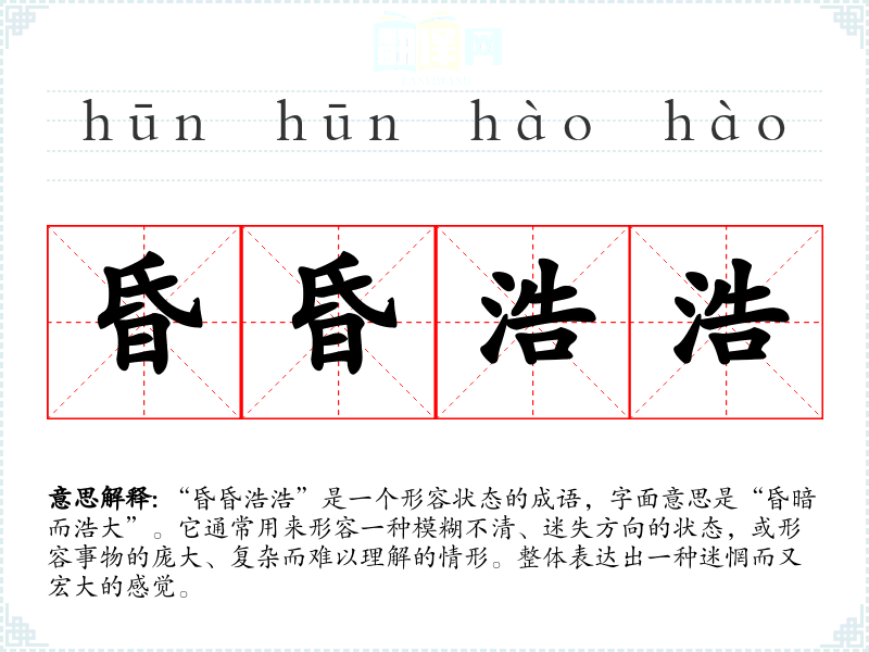 | 昏昏浩浩 | 苍茫浩渺。 |