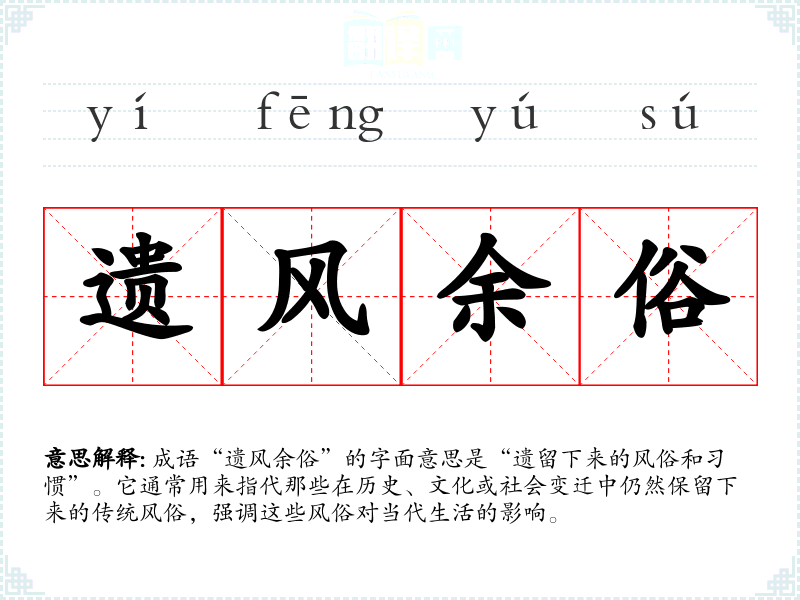 通过对“遗风余俗”的学,我认识到传统文化在现代社会的重要性。它不仅是历史的见证,更是我们身份认同的根基。在语言学和表达中,这个成语提醒我要尊重和珍惜文化的多样性。