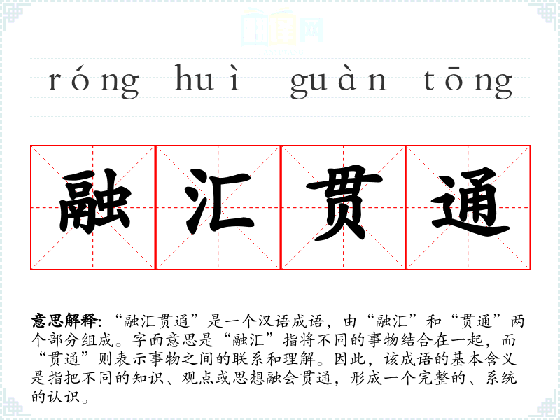 - “融会贯通”:与“融汇贯通”意思相近,强调知识的整合与理解。