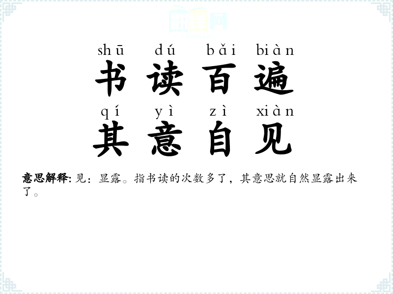 见:显露。指书读的次数多了,其意思就自然显露出来了。 |