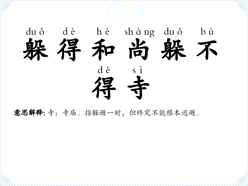寺:寺庙。指躲避一时,但终究不能根本逃避。 |