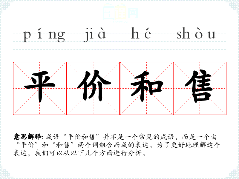 成语“平价和售”并不是一个常见的成语,而是一个由“平价”和“和售”两个词组合而成的表达。为了更好地理解这个表达,我们可以从以下几个方面进行分析。