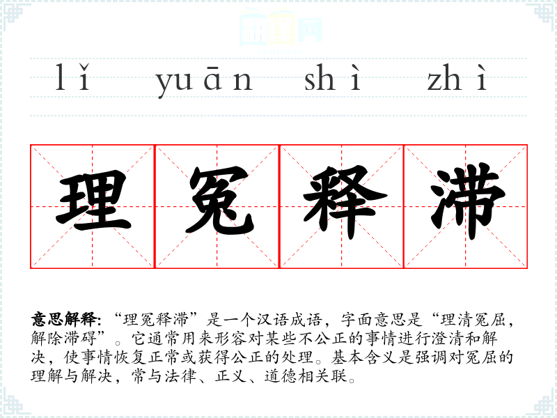 “理冤释滞”是一个汉语成语,字面意思是“理清冤屈,解除滞碍”。它通常用来形容对某些不公正的事情进行澄清和解决,使事情恢复正常或获得公正的处理。基本含义是强调对冤屈的理解与解决,常与法律、正义、道德相关联。
