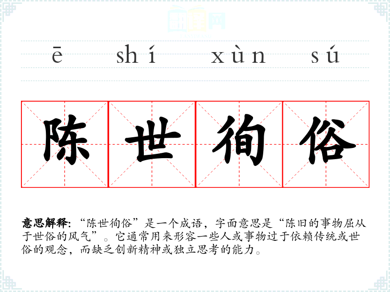 在英语中,“sticking to tradition”或“conforming to societal norms”可以作为“陈世徇俗”的对应表达。这些短语也传达了对过于依赖传统和世俗观念的批评。