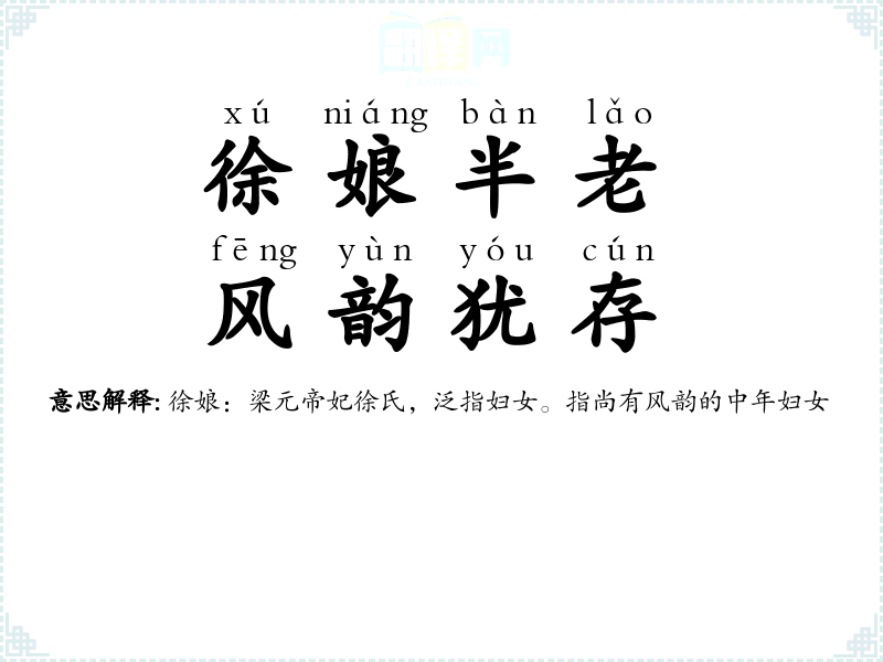徐娘:指梁元帝妃徐氏。指尚有风韵的中年妇女。 |