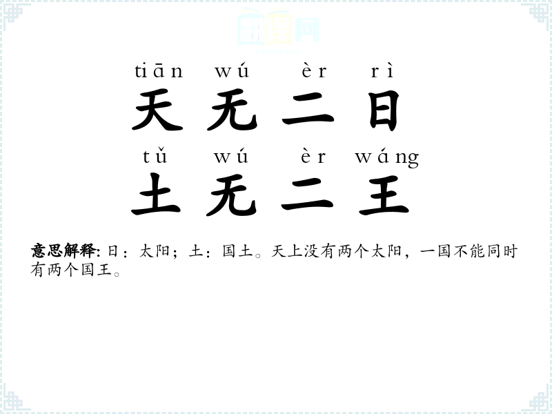 | 天无二日,土无二王 |