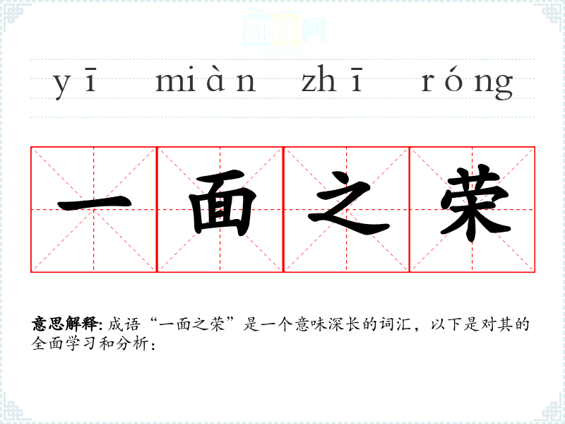 成语“一面之荣”是一个意味深长的词汇,以下是对其的全面学*和分析: