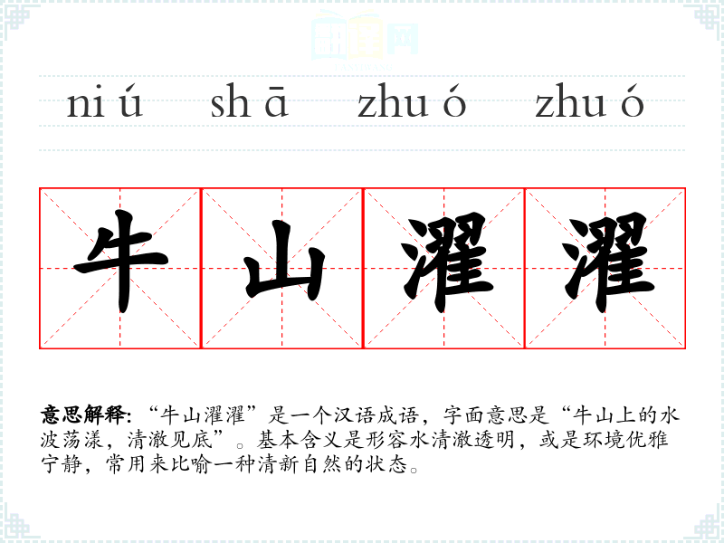 “牛山濯濯”是一个汉语成语,字面意思是“牛山上的水波荡漾,清澈见底”。基本含义是形容水清澈透明,或是环境优雅宁静,常用来比喻一种清新自然的状态。