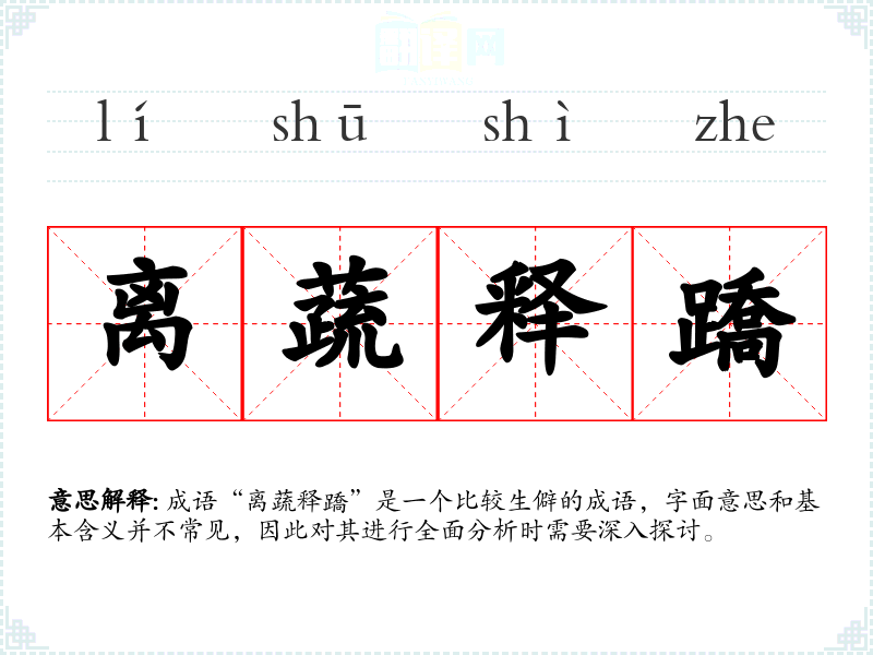 成语“离蔬释蹻”是一个比较生僻的成语,字面意思和基本含义并不常见,因此对其进行全面分析时需要深入探讨。