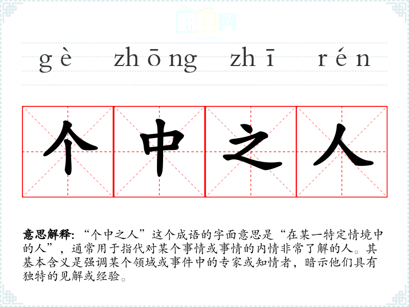 - 日常对话:当谈论某个话题时,可以引入“个中之人”来强调某个知情者的观点。