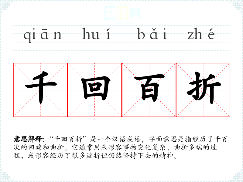 “千回百折”在中国文化中具有深厚的哲学意味,体现了对人生不易的认知和对坚持不懈精神的赞美。在现代社会中,这一成语仍然适用,尤其是在面对快速变化和不确定性的商业环境时,强调了适应与坚持的重要性。