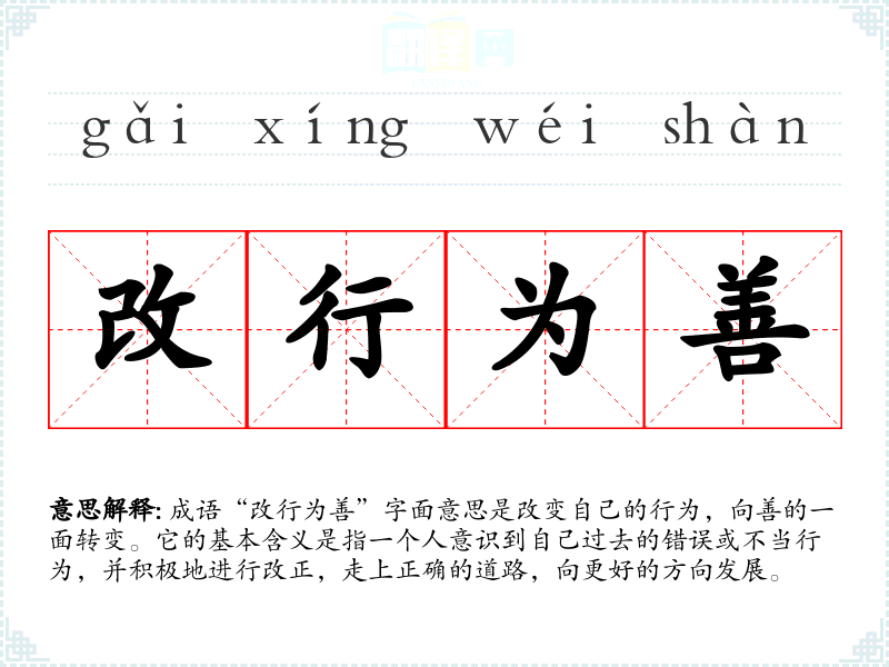 - 改行为善并不是一朝一夕的事情,需要持之以恒的努力。
