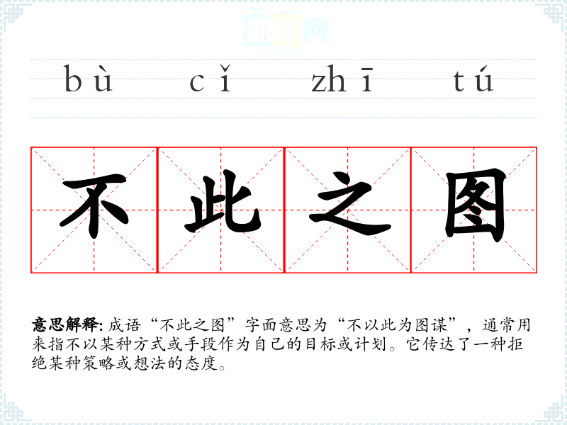 | 不此之图 | 此:这个;图:图谋,计划。不打算做此事或不考虑这个问题。 |