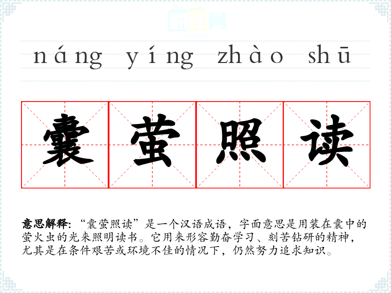 通过对“囊萤照读”的深入学,我认识到勤奋学的重要性,以及在逆境中坚持不懈的价值。这一成语不仅丰富了我的语言表达,也让我在生活中更加注重努力和坚持,激励自己不断追求知识和进步。