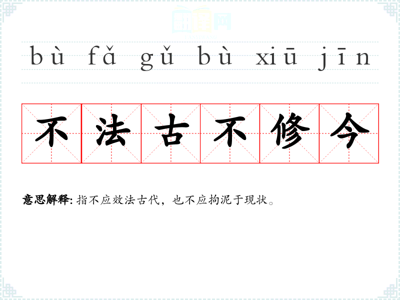 | 不法古不修今 | 指不应效法古代,也不应拘泥于现状。 |
