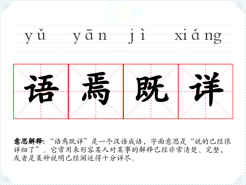“语焉既详”是一个汉语成语,字面意思是“说的已经很详细了”。它常用来形容某人对某事的解释已经非常清楚、完整,或者是某种说明已经阐述得十分详尽。