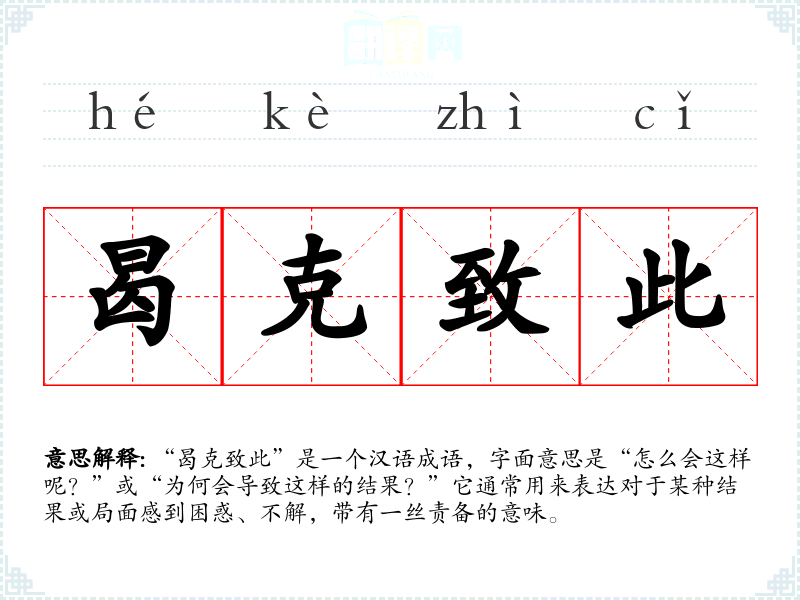 | 曷克致此 | 曷:文言疑问词,为什么;克:能够;致:达到。怎么能够弄到这种地步呢? |