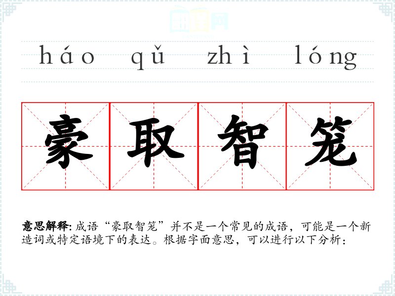 成语“豪取智笼”并不是一个常见的成语,可能是一个新造词或特定语境下的表达。根据字面意思,可以进行以下分析: