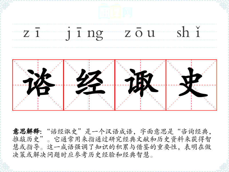 “谘经诹史”源自古代的学术传统。在古代,经典文献(如《论语》、《尚书》等)和历史记载(如《史记》、《汉书》等)被视为智慧的源泉。学者们通过对这些文献的研究,获得对社会、政治和人生的深刻理解。这个成语的使用反映了文化中重视传统和历史的价值观。