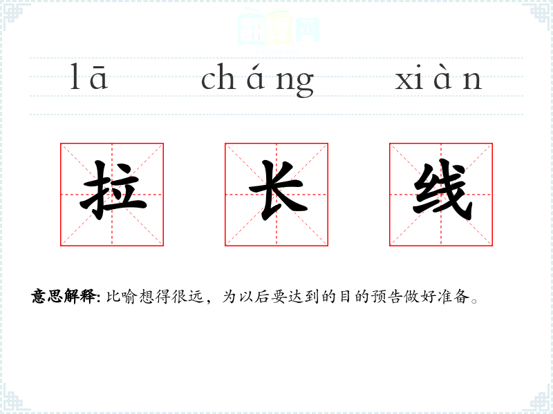 | 拉长线 | 比喻想得很远,为以后要达到的目的预告做好准备。 |