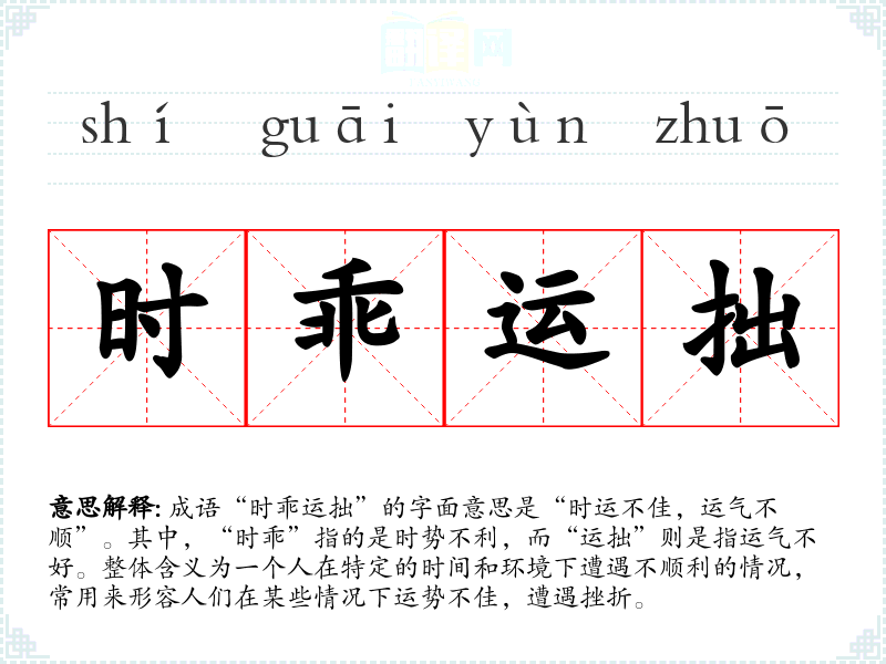 | 时乖运乖 | 时运不顺,命运不佳。指处境不顺利。 |