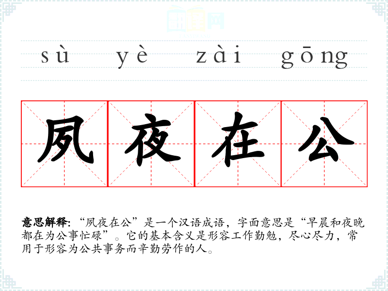 在**传统文化中,勤勉工作被视为美德,尤其是在古代,士人和官员对公事的忠诚和奉献精神备受推崇。“夙夜在公”不仅是对个人工作的要求,也是对整个社会责任感的体现。在现代社会,虽然竞争激烈,但这一成语依然适用于强调工作态度和职业道德。