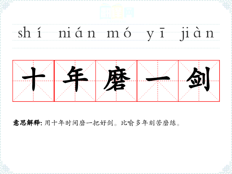 | 十年磨剑 | 比喻多年刻苦磨练。 |