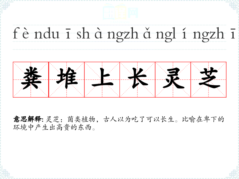 灵芝:菌类植物,古人以为吃了可以长生。比喻在卑下的环境中产生出高贵的东西。 |