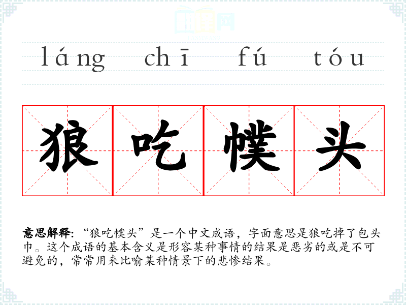 “狼吃幞头”是一个中文成语,字面意思是狼吃掉了包头巾。这个成语的基本含义是形容某种事情的结果是恶劣的或是不可避免的,常常用来比喻某种情景下的悲惨结果。