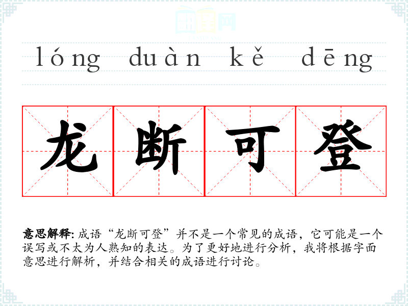 成语“龙断可登”并不是一个常见的成语,它可能是一个误写或不太为人熟知的表达。为了更好地进行分析,我将根据字面意思进行解析,并结合相关的成语进行讨论。