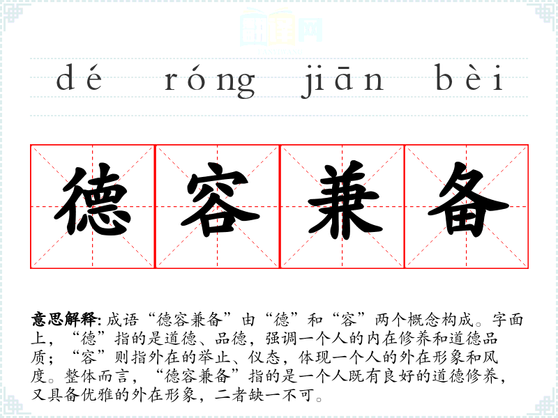 德容兼备 德容:指女子的品德和容貌。兼备:都具备。品德和容貌都非常好。