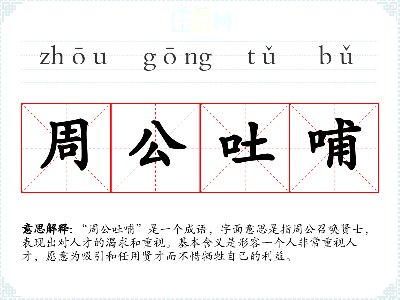 该成语源自**历史上的周公旦,他是周朝的开国元勋之一,也是周武王的弟弟。传说周公在治理国家期间,常常在吃饭时恭候有才之人,若有人来访,便会吐出嘴里的食物,来表示对人才的重视和期待。这一行为反映了周公对贤才的求贤若渴,后世便以此成语来形容重视人才的精神。