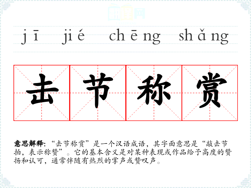 | 击节称赏 | 节:节拍;赏:赞赏。形容对诗文、音乐等的赞赏。 |
