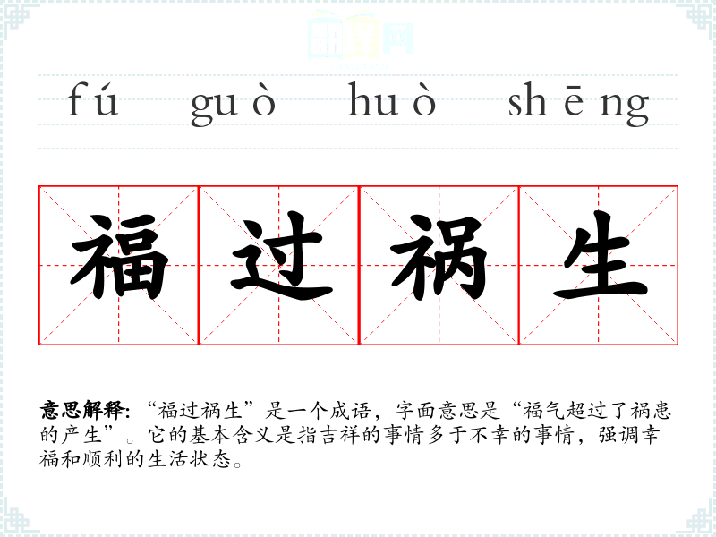 - 吉祥如意:强调事物的发展是朝着好的方向,和“福过祸生”有相似的积极意义。