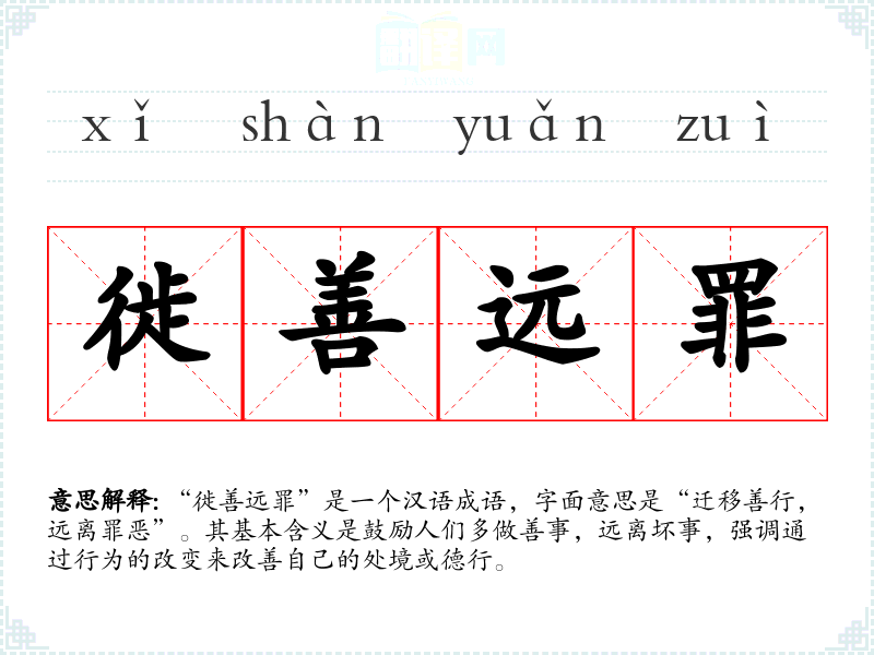 | 徙善远罪 | 趋向善良,远离罪恶。 |