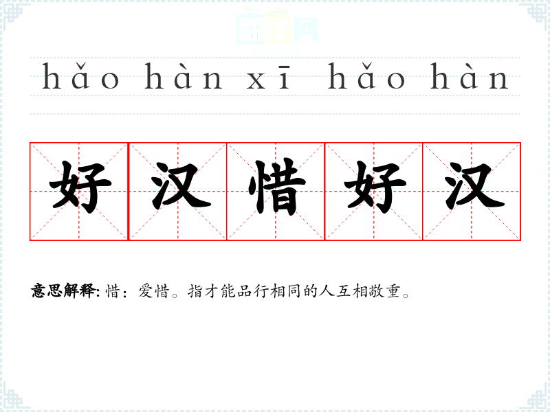 彪:小老虎,比喻躯干壮大;汉:男子。身材高大、结实的男子。 |