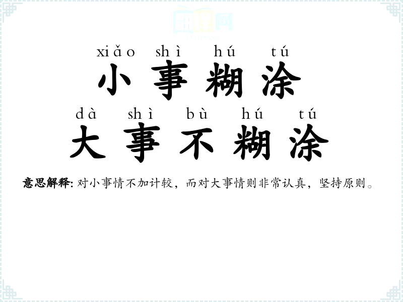 对小事情不加计较,而对大事情则非常认真,坚持原则。 |