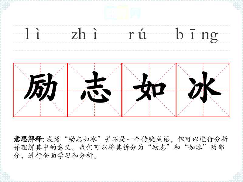 成语“励志如冰”并不是一个传统成语,但可以进行分析并理解其中的意义。我们可以将其拆分为“励志”和“如冰”两部分,进行全面学习和分析。