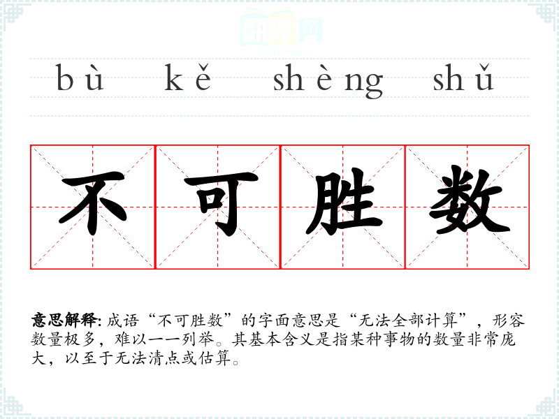 不可胜计 胜:尽;计:计算。不能全部计算完。形容数量极多。