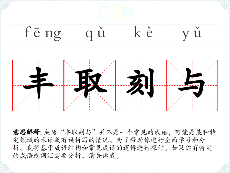 成语“丰取刻与”并不是一个常见的成语,可能是某种特定领域的术语或有误拼写的情况。为了帮助你进行全面学习和分析,我将基于成语结构和常见成语的逻辑进行探讨。如果你有特定的成语或词汇需要分析,请告诉我。