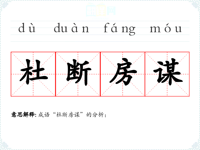 “杜断房谋”是一个成语,字面意思是“杜绝一切阴谋诡计”,常常用来形容一种断然拒绝他人阴暗企图的态度。它强调了对不正当行为的排斥和对清白正直的坚持。