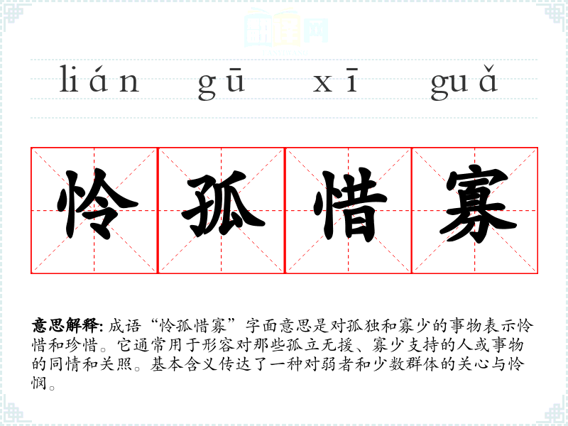 - 在社会活动中,我们应该怜孤惜寡,帮助那些失去支持的人。