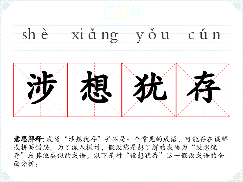 成语“涉想犹存”并不是一个常见的成语,可能存在误解或拼写错误。为了深入探讨,假设您是想了解的成语为“设想犹存”或其他类似的成语。以下是对“设想犹存”这一假设成语的全面分析: