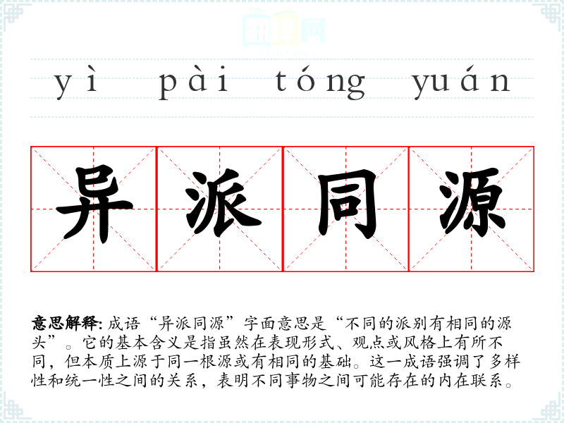 通过对“异派同源”的深入学,我认识到在语言学和表达中,理解成语背后的文化内涵是至关重要的。它不仅丰富了我的语言表达能力,也增强了我对不同文化和思想的理解与尊重。在日常交流中,灵活运用这一成语可以增进人际关系的和谐与相互理解。