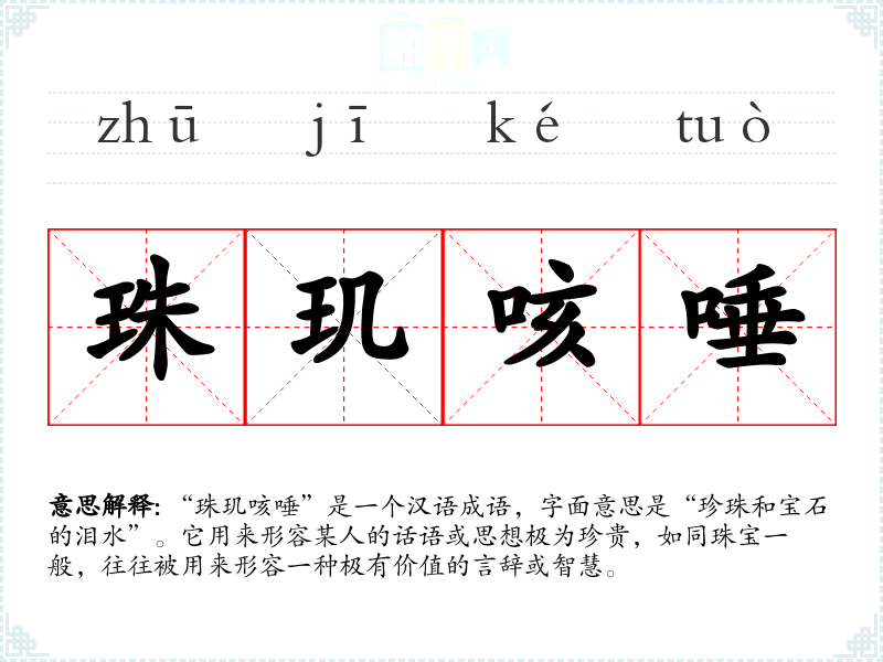 通过对“珠玑咳唾”的学,我更加理解了表达与智慧之间的关系。这不仅丰富了我的语言表达能力,也让我在生活中更加注重言辞的选择和思想的深度。这个成语提醒我们,珍惜和分享智慧是我们沟通与学的重要部分。