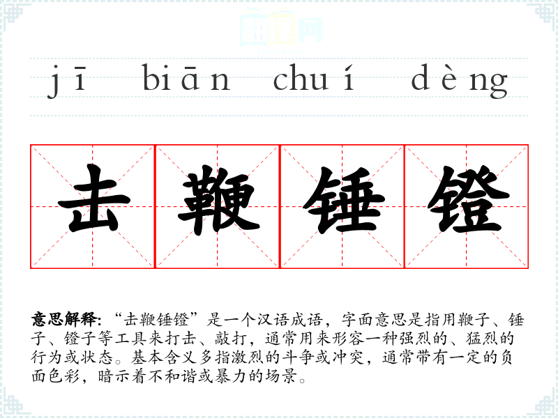 “击鞭锤镫”是一个汉语成语,字面意思是指用鞭子、锤子、镫子等工具来打击、敲打,通常用来形容一种强烈的、猛烈的行为或状态。基本含义多指激烈的斗争或冲突,通常带有一定的负面色彩,暗示着不和谐或暴力的场景。