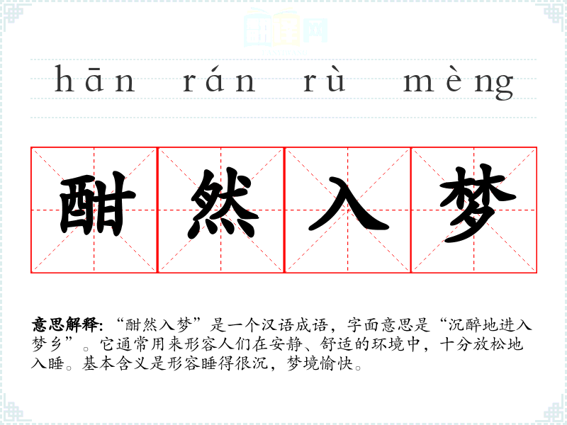“酣然入梦”给人一种温馨、宁静的感觉,联想到一个人放下一切烦恼,享受轻松睡眠的画面。这种情感反应可以影响到我们的思维方式,让我们在忙碌的生活中更加重视放松和休息。