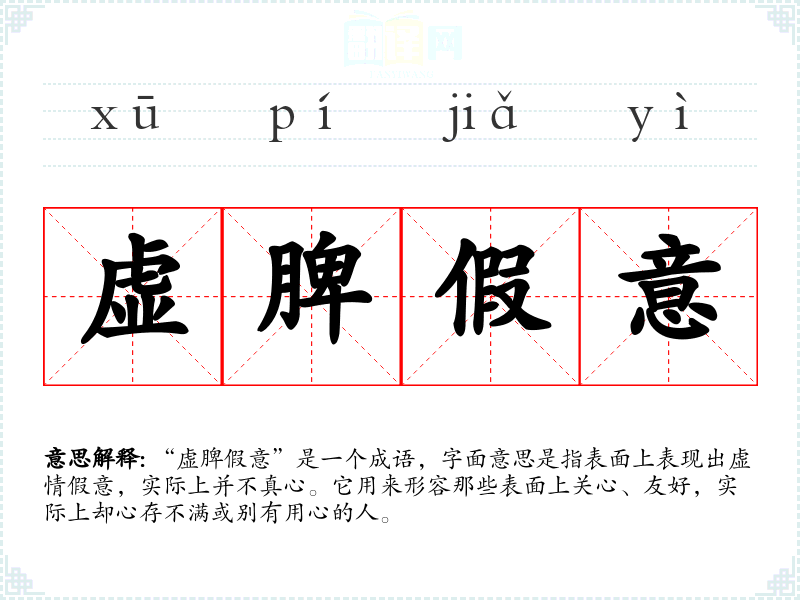 “虚脾假意”是一个成语,字面意思是指表面上表现出虚情假意,实际上并不真心。它用来形容那些表面上关心、友好,实际上却心存不满或别有用心的人。