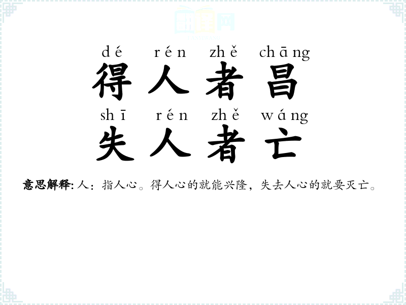 人:指人心。得人心的就能兴隆,失去人心的就要灭亡。 |